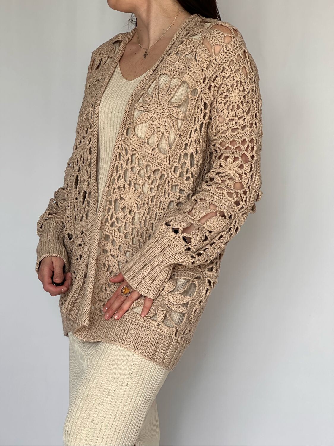 Кардиган — оверсайз, и при этом... его можно адаптировать под себя.