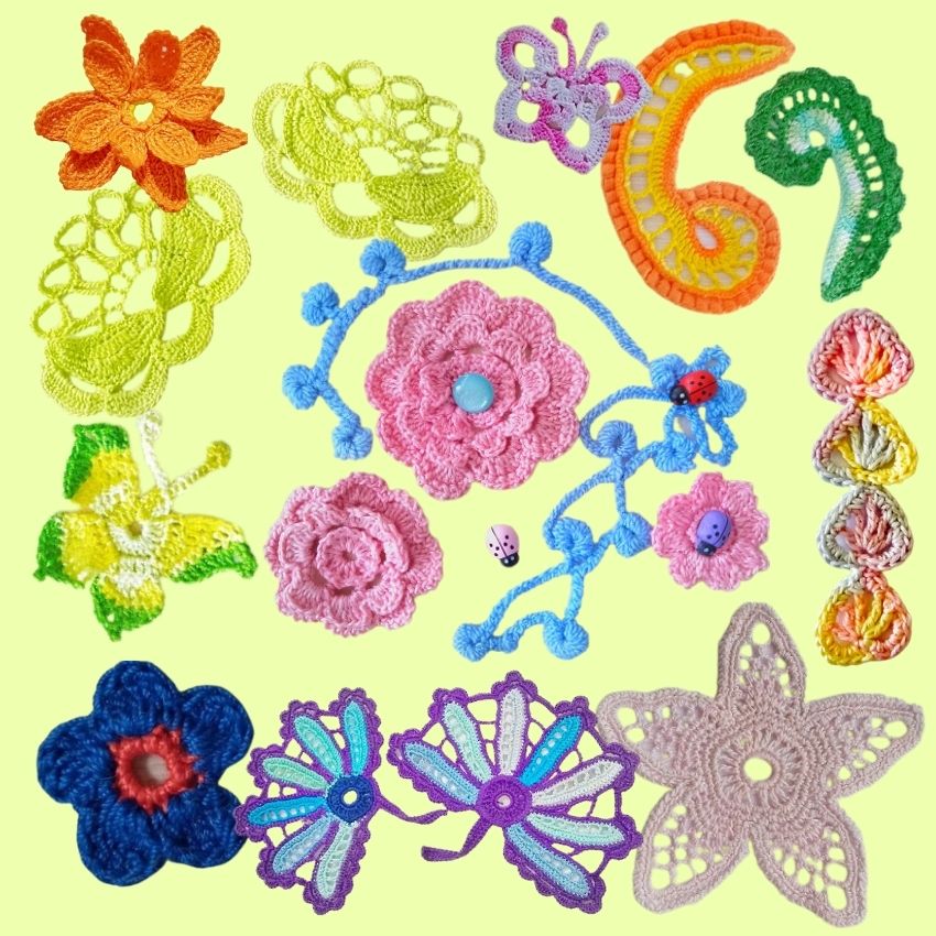 Если обратить внимание на изделия в ирландском кружеве, то в 95 % композиций применяются природные мотивы. Поэтому в «100 видео-уроках мотивов ирландского кружева» было уделено большое внимание разнообразию листиков, розочек, бабочек, веточек.